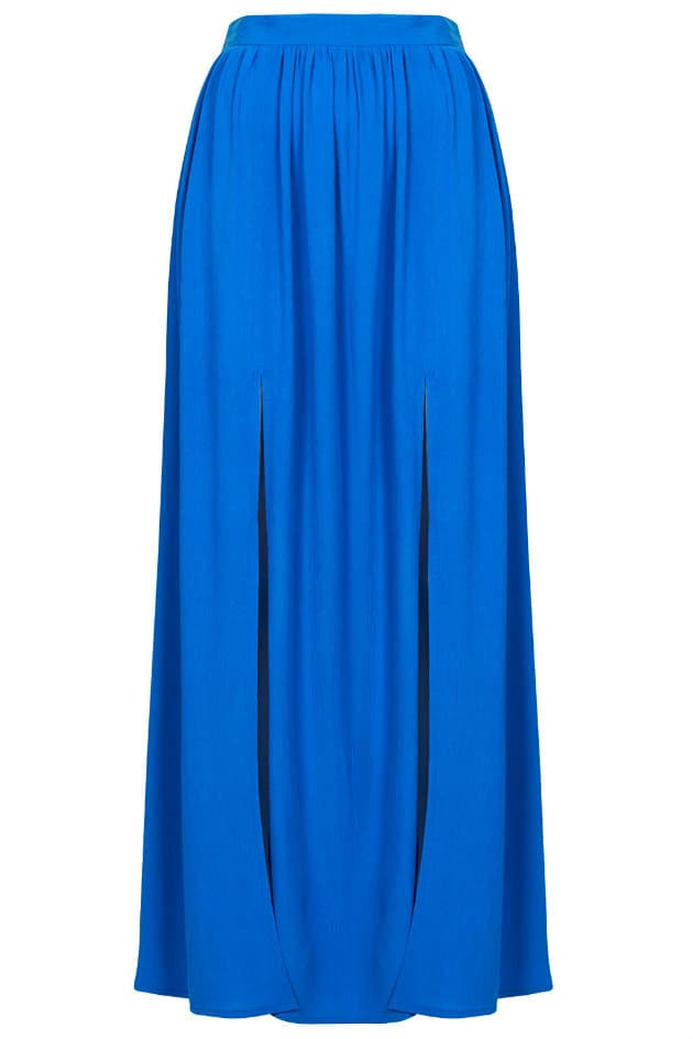 Aprovecha las faldas de telas frescas y con mucho movimiento. Las maxi faldas con vuelo, tienden a ser de telas frescas recogidas en el área de la cintura, lo que otorga visualmente una cintura más pequeña y caderas más anchas.