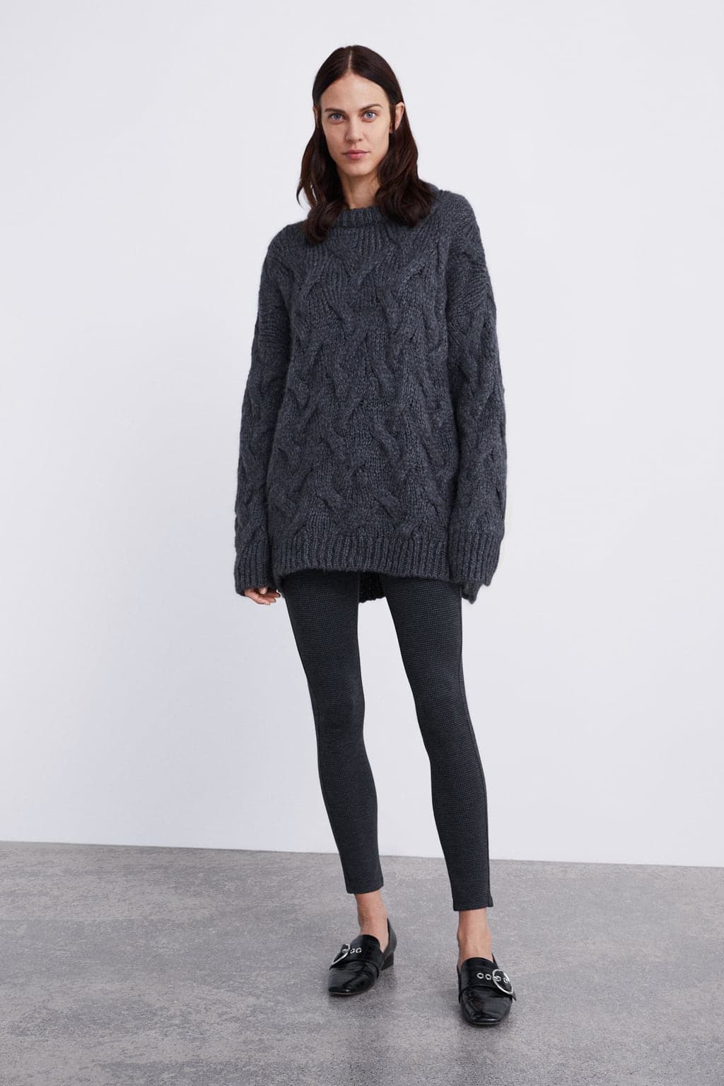 Las prendas de tallas mucho más grandes u oversized están siendo la gran tendencia de este 2019 y los leggins hacen un perfecto conjunto con ellas. Prueba con suéteres, camisas y chamarras, estas prendas lograrán un perfecto estilo alargado de tu figura.