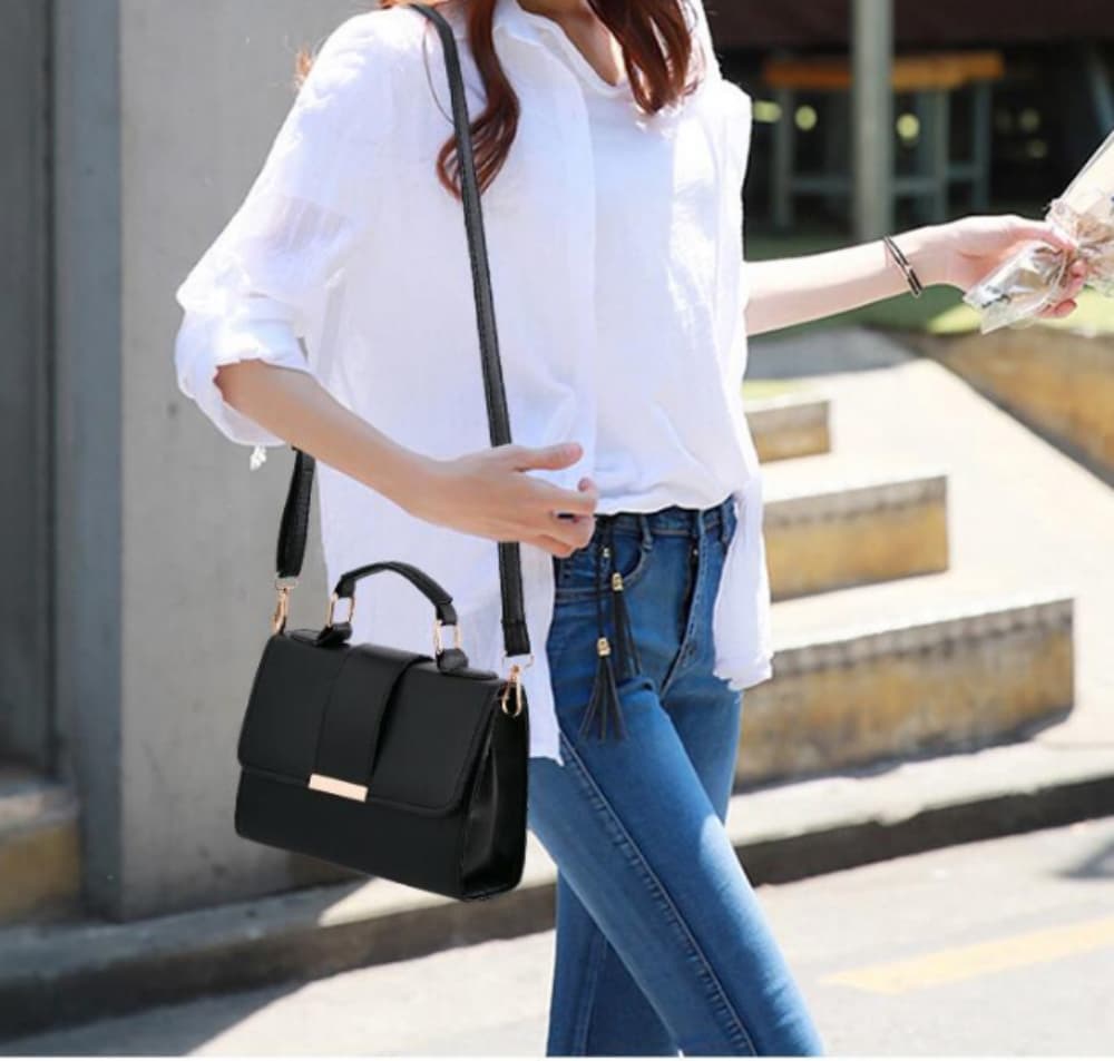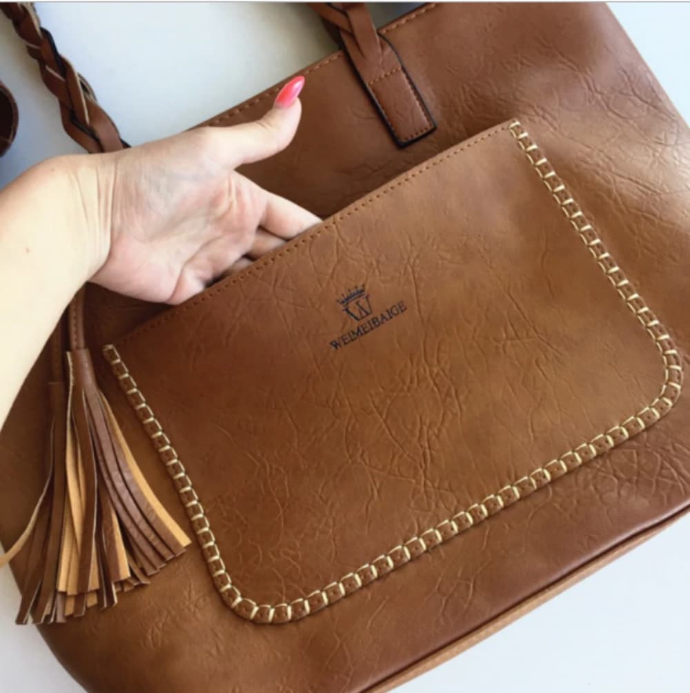 Esta bolsa de cuero es el número 1 en Aliexpress con más de 7 colores diferentes. Funciona muy bien para las mujeres casuales que disfrutan de mucho espacio para guardar todo en un solo lugar, incluso en los bolsillos. Los colores son: azul marino, negro, vino, rosa y verde. Su precio es US $16.14.