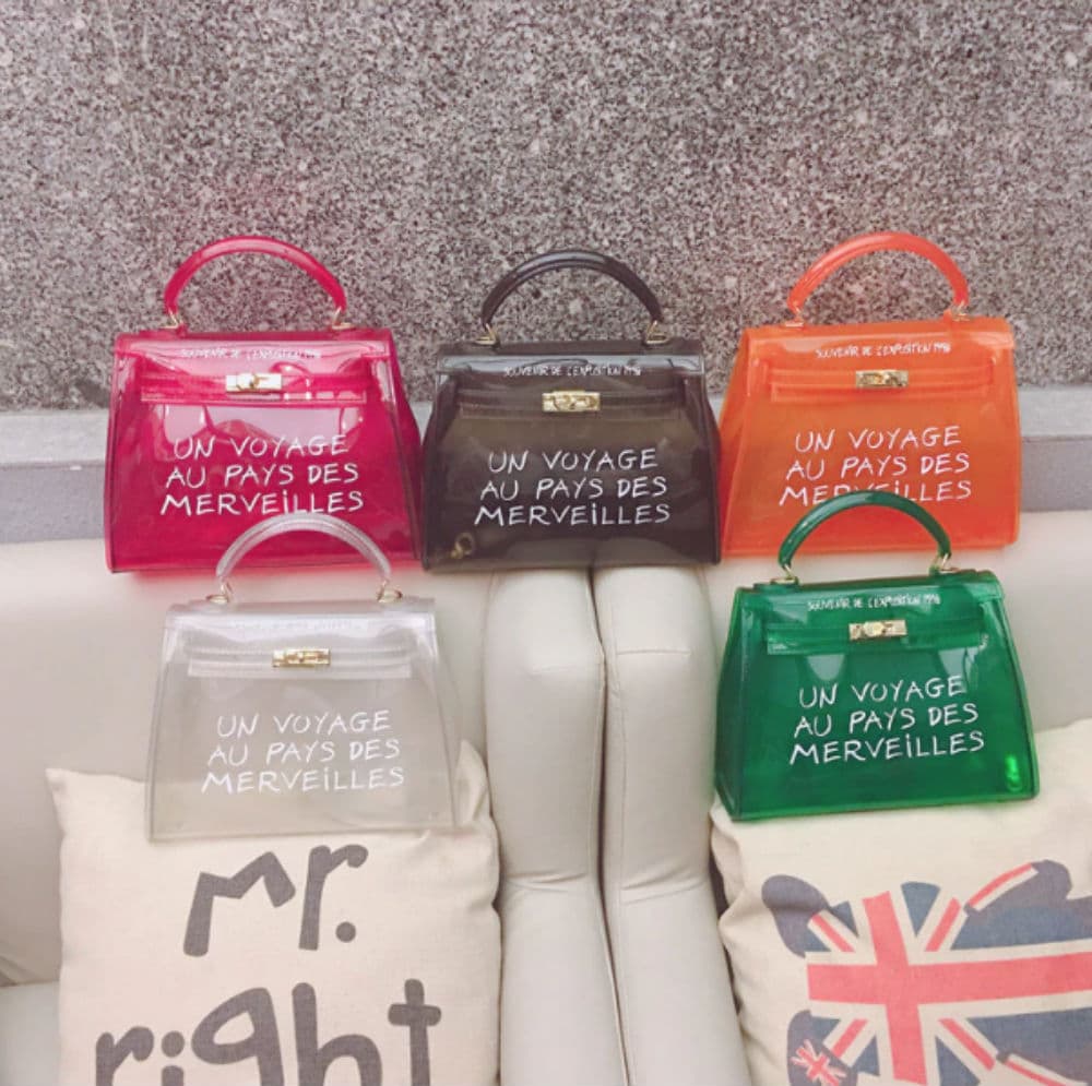 Estas maletas son diferentes y perfectas para quien quiere estar a la moda. Con una frase y transparencia, es perfecta para componer looks fashionistas. La consigues en rosa, marrón, naranja, blanca o verde por US $17.90.