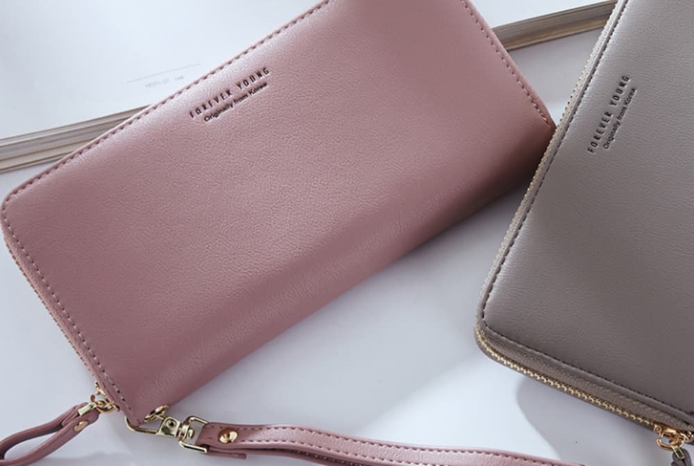 Esta bolsa estilo cartera es perfecta para cargar documentos y teléfono móvil. No ocupa mucho espacio y puedes llevarlo en la mano, si así prefieres. Hay varios colores disponibles, entre ellos están rosa, gris y verde. Su precio es US $8.40.