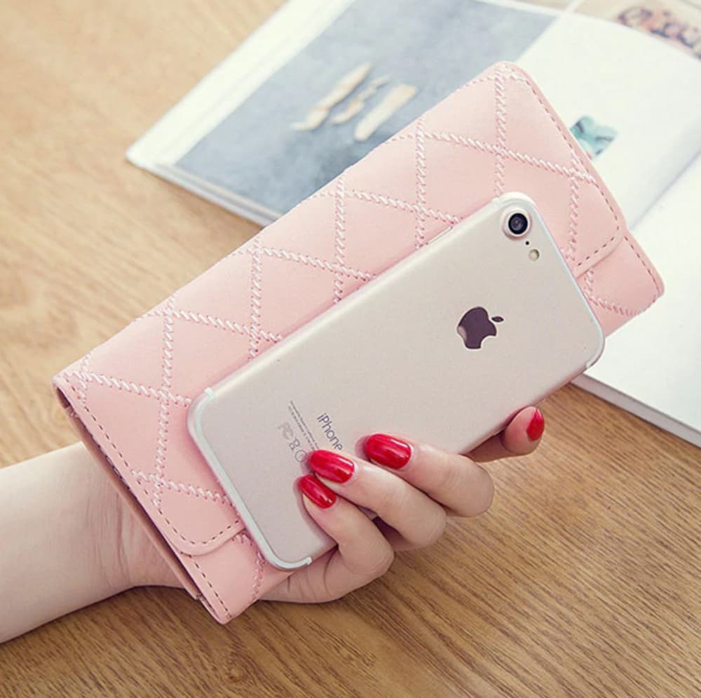 Es una cartera perfecta si quieres llevarla en la mano o en el bolsillo de su chaqueta. Con el cuero suave y un adorno adorable, tendrás dos colores en un sólo producto. Disponible en rosa, negro, beige y vino. Su precio es US $5.20.