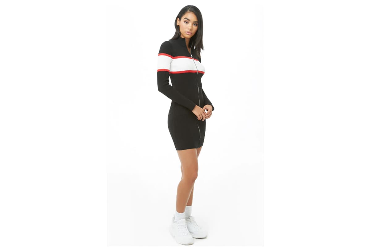Un look atlético no siempre significa ocupar pants. Puedes lucir un vestido que evoque el athleisure y combinarlo con tenis un tanto toscos.