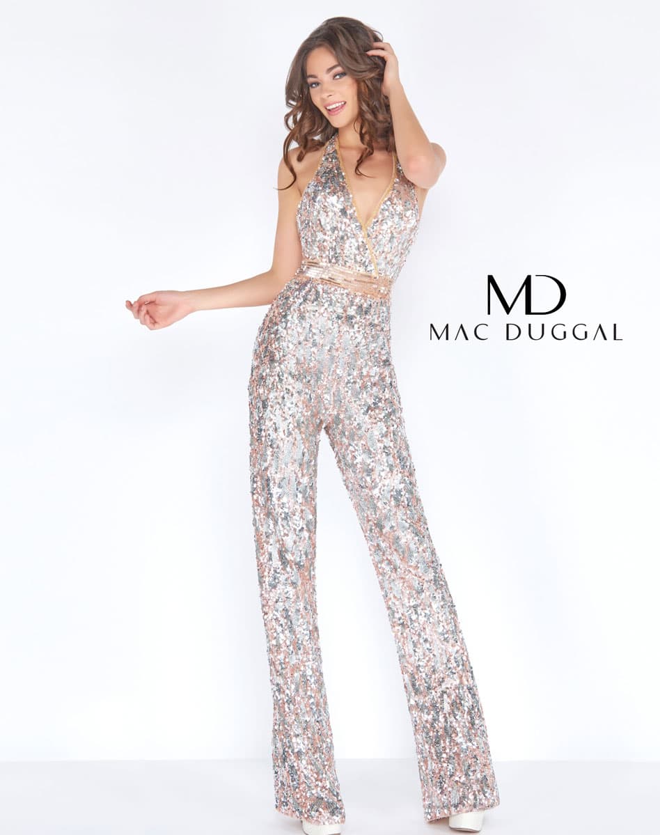 Si no eres fan de los vestidos tradicionales, puedes llevar un mono corto o largo a tu fiesta de graduación. Inspírate en éste que es strapless y está lleno de brillo.