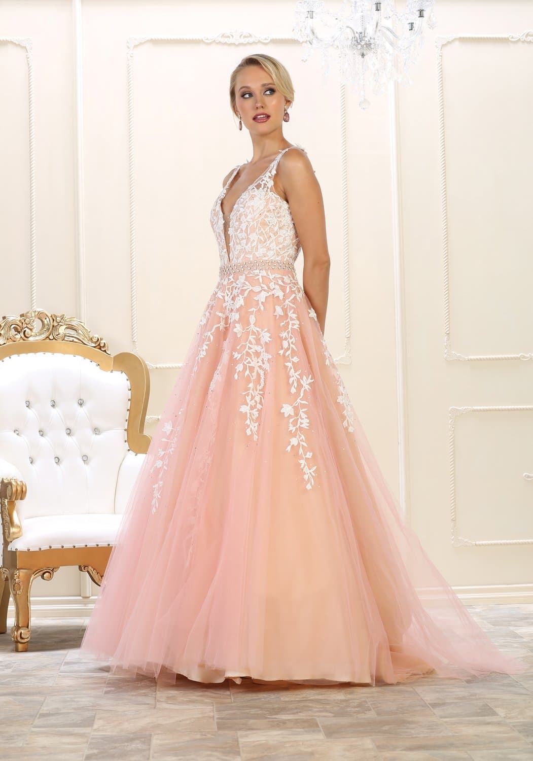 Este otro vestido es como de princesa. Aunque es bastante tradicional, el toque sexy lo da su pronunciado escote.
