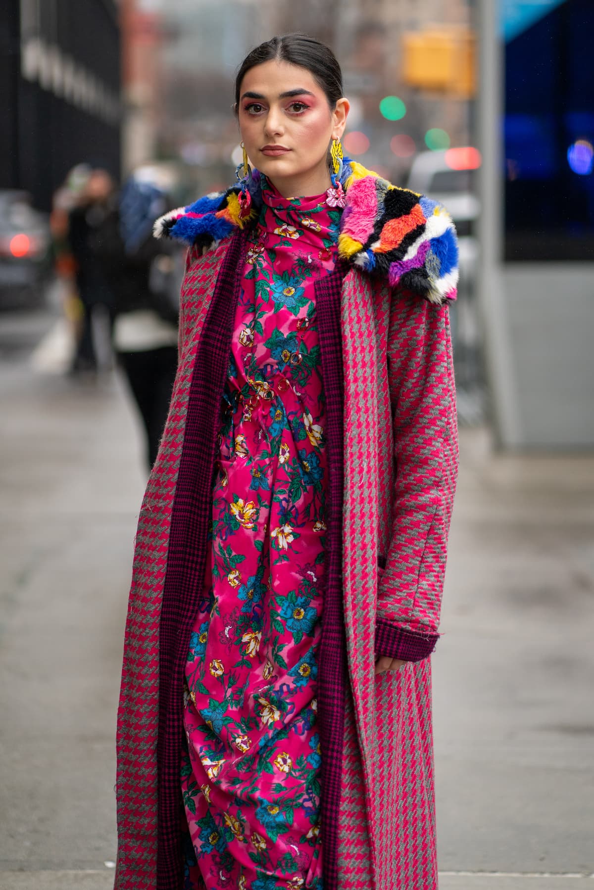 Esta mezcla de tonos y prints da como resultado un atuendo muy exagerado y grotesco.