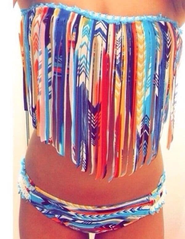 En este bikini los flecos de colores traen aires étnicos al vestido de baño. Hagamos a un lado lo tradicional y juguemos con estos nuevos modelos.