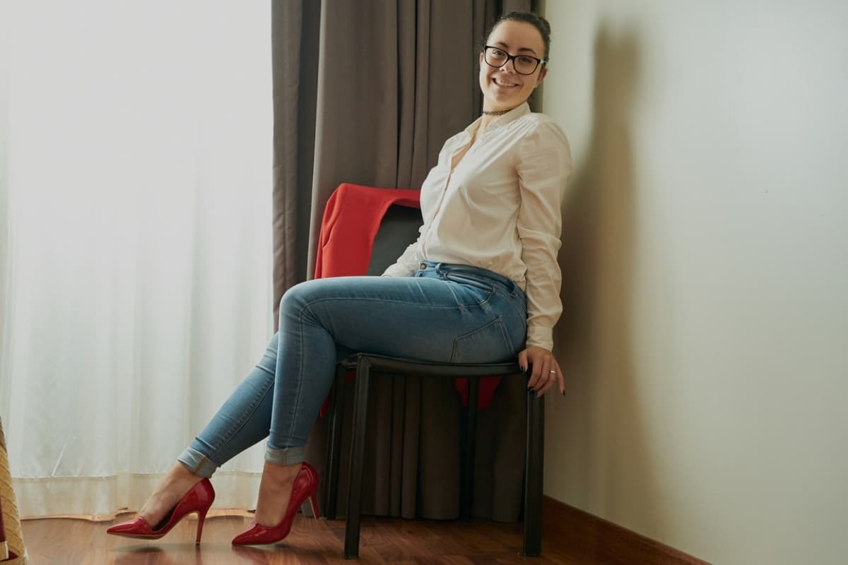 La clave en que tus jeans se adapten al ambiente laboral está en los accesorios y que le agregas. Con unos zapatos con tacón, rápidamente te verás mucho más profesional.