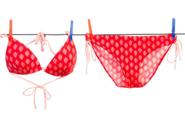 No importa si llegas cansada de tu día de playa, no tires tu traje de baño a la lavadora. El problema con las máquinas de lavar es que estropean todas las zonas delicadas de tu bañador –copa, push-ups, cintas, entre otras-. Esto puede estirar tu conjunto y dañarlo.