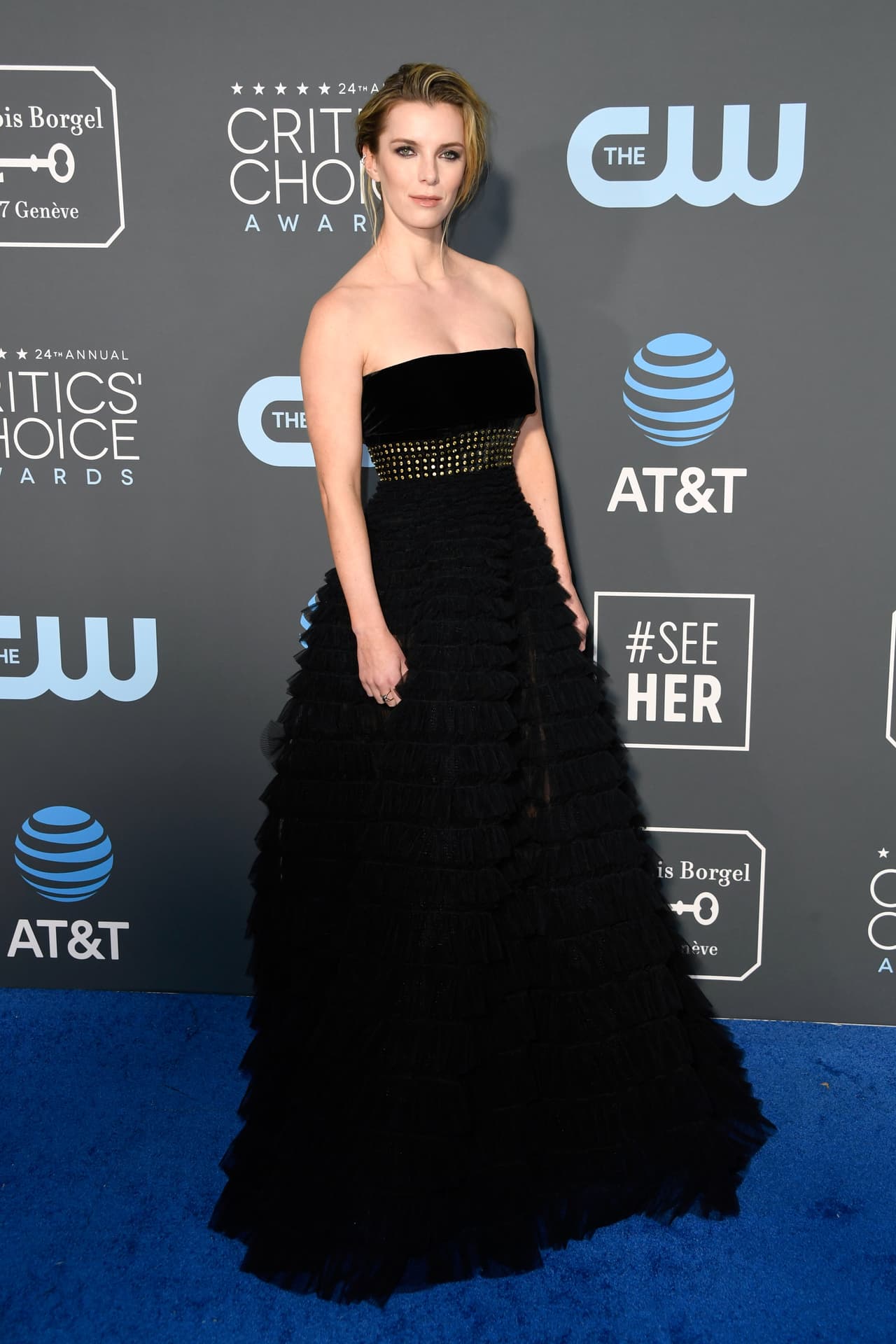 Aunque la tradición es que las novias vistan de blanco, no quisimos irnos sin darte una opción poco convencional, pero igual de fabulosa. Betty Gilpin, a quien vemos en la serie GLOW, desfiló por la alfombra roja con un modelo negro, cuya falda de princesa estaba hecha con pequeñas capas de tul.
