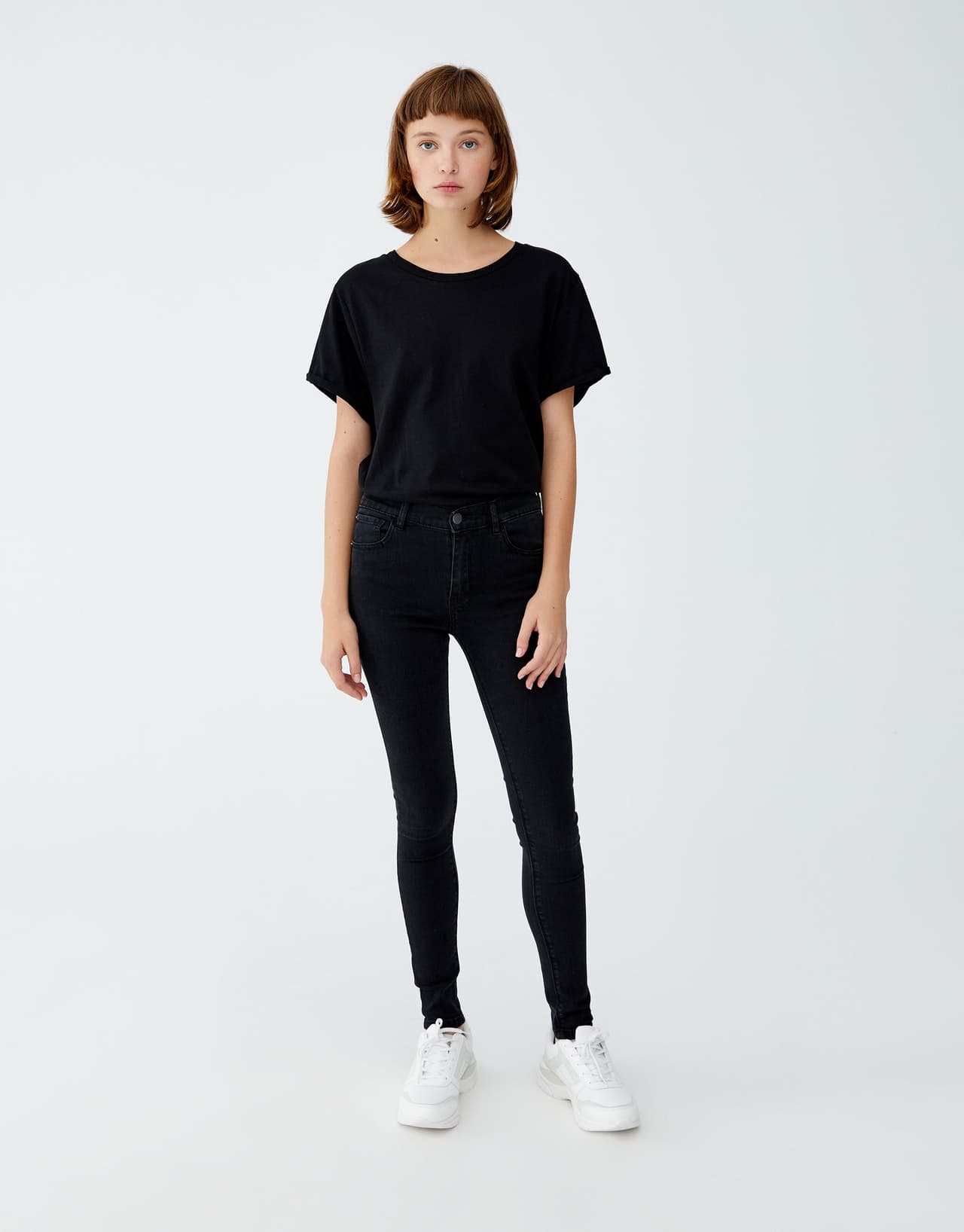 Y para darle un toque diferente a tus jeans negros, puedes escoger unos que tengan detalles, como pedrería. Incluso puedes agregarlas tú misma.