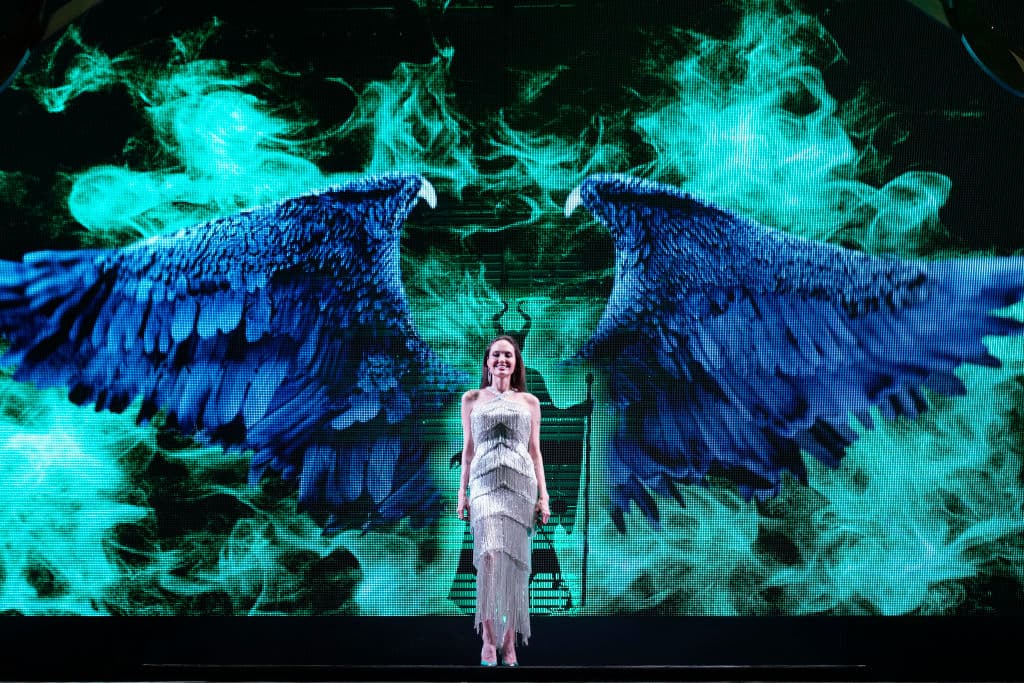 Una vez que comenzó la función, el escenario introdujo a Angelina con una espectacular entrada, digna de Maléfica irrumpiendo en la presentación de la princesa Aurora.