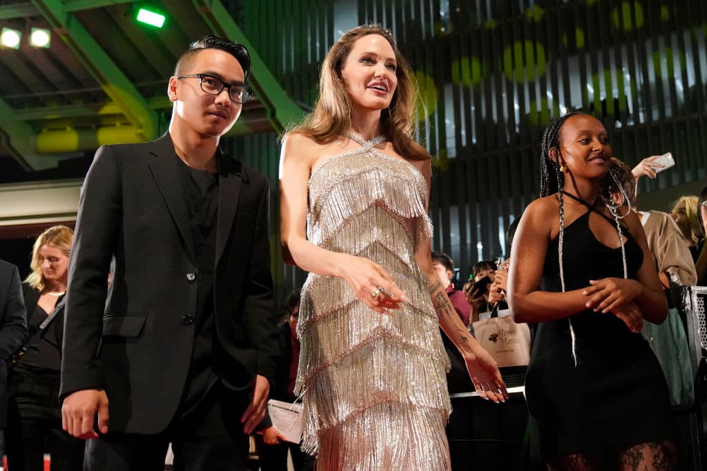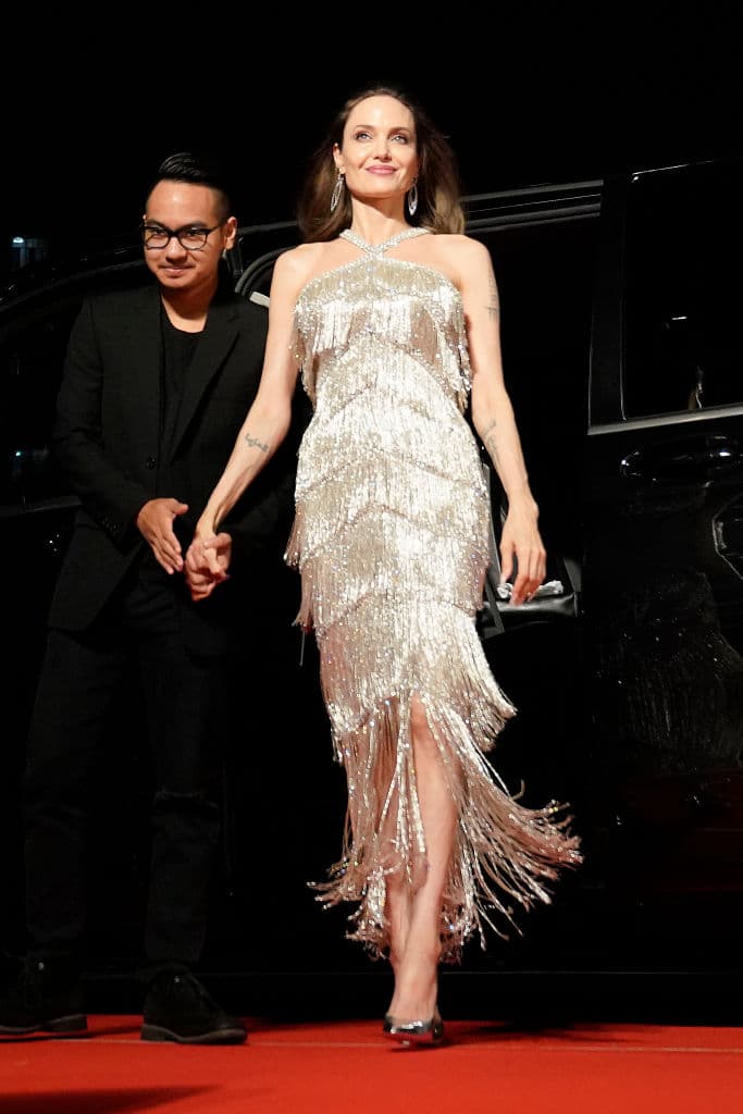 En esta ocasión, Angelina estuvo acompañada de dos de sus hijos: Maddox Chivan Jolie-Pitt y Zahara Marley Jolie-Pitt. Formaron un trío enternecedor y muy unido durante toda la velada.