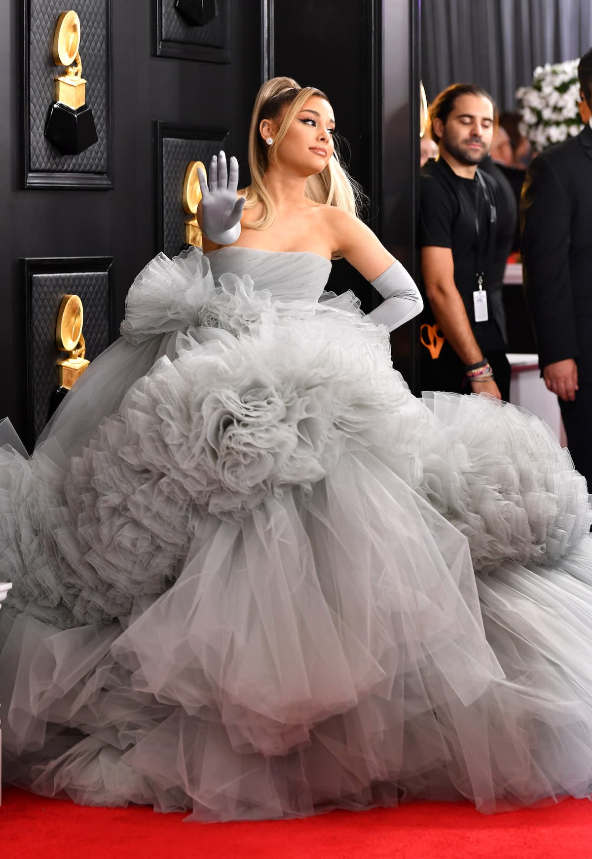 Ariana Grande lució un vestido tan enorme en los Grammys 2020, que no cabía por la puerta