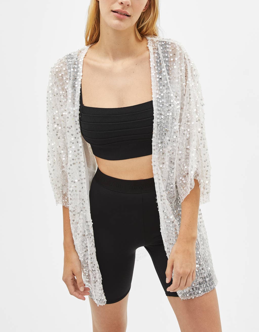 Combinan perfecto con la tendencia de shorts de ciclista. Puedes darle un toque distinto con un kimono brillante.