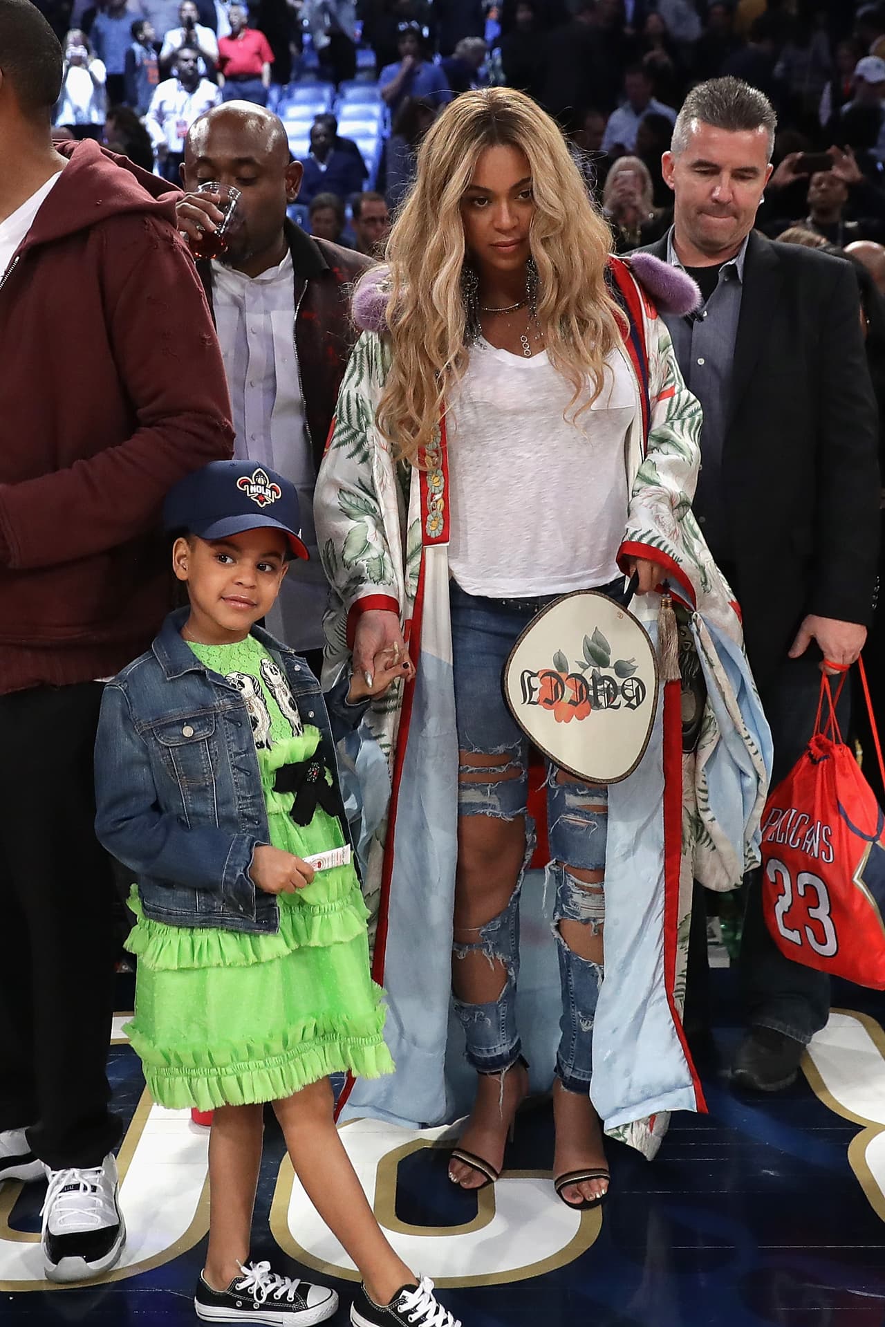 Beyoncé y su esposo, Jay-Z son fanáticos del baloncesto y van regularmente a ver partidos de la NBA. A su corta edad, Blue Ivy también se ha hecho fanática pero su madre no pierde oportunidad para que la niña se vea espléndida como ella. En este evento, ambas llevaron un look casual con mucha personalidad.