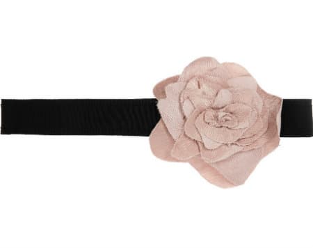 Este cinturón negro de Lanvin embellecido con una gran flor rosa palo ¡simplemente me encanta! Es un complemento muy romántico que quedará de escándalo con pantalones de talle alto en color negro junto con una camiseta ceñida negra y una blazer del mismo color.