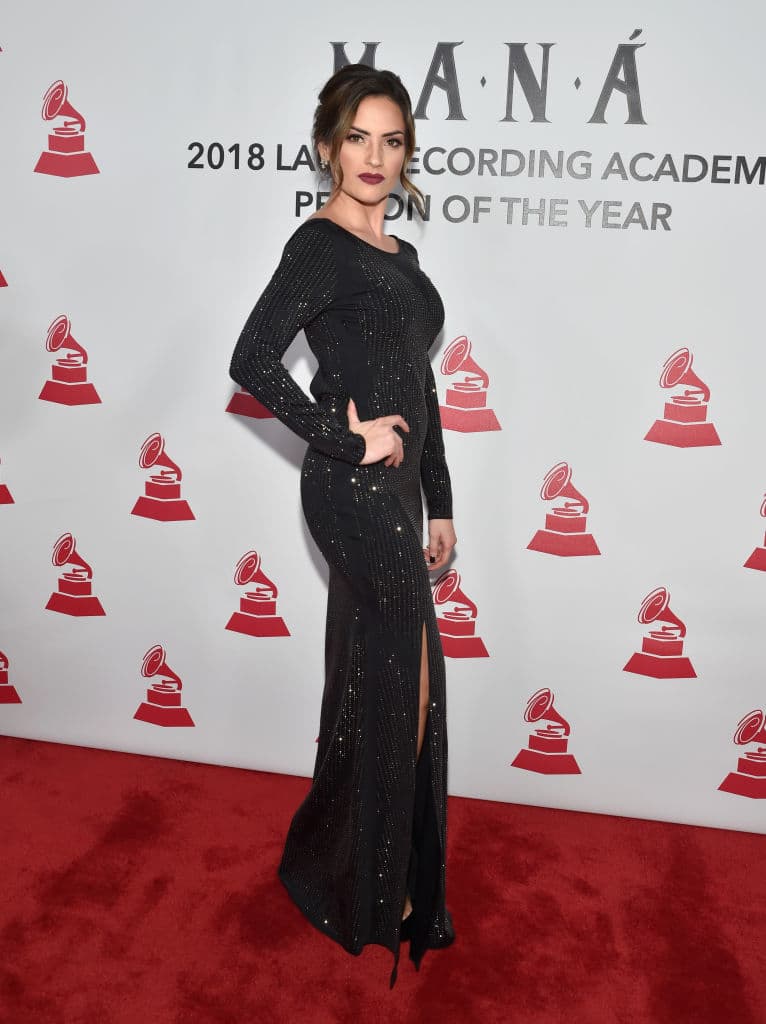 Los brillos y las incrustaciones también son un gran complemento. Aquí puedes ver como Michelle Galvan apuesta por un corte recto y ceñido. Sin los brillos quizás hubiera logrado un look parecido al de Morticia de Los Locos Addams, pero la decoración en este modelo le permitió acaparar las lentes.