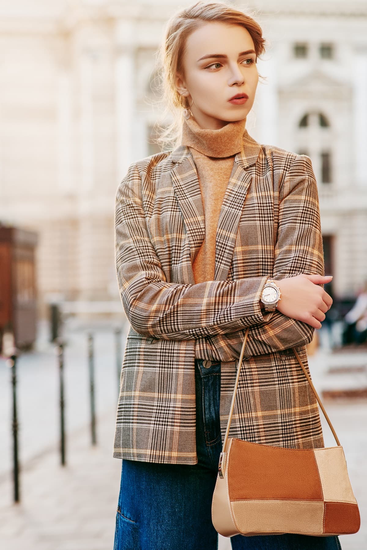 Para lograr un maravilloso streetstyle, puedes combinar tu blazer con una t-shirt blanca. Los accesorios complementarán todo.