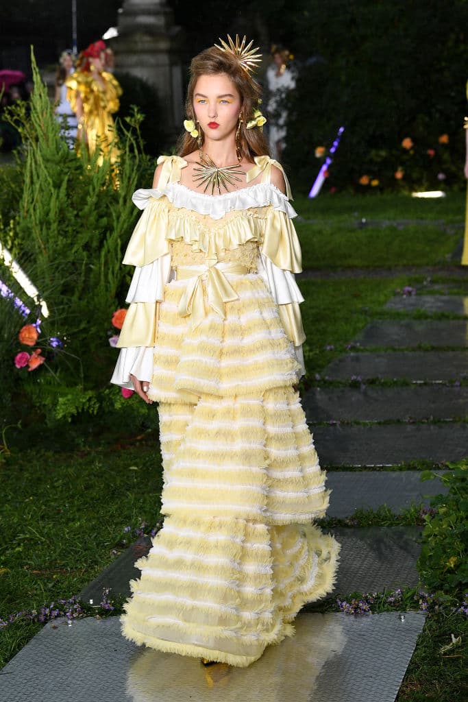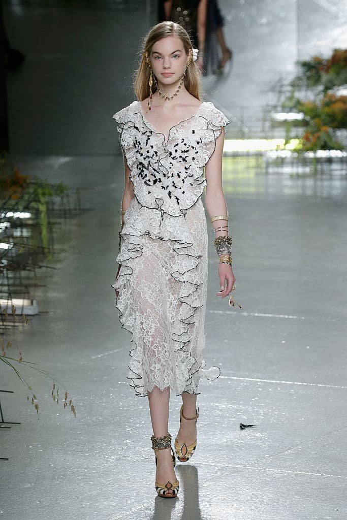 Rodarte parece estar marcando una nueva tendencia con su estilo: los vestidos que parecen caídos del cielo. No importa en qué color ni de qué forma, sus modelos parecen siempre hadas madrinas. Excesivos adornos de flores y un maquillaje colorido le dan el toque final a los atuendos del diseñador.