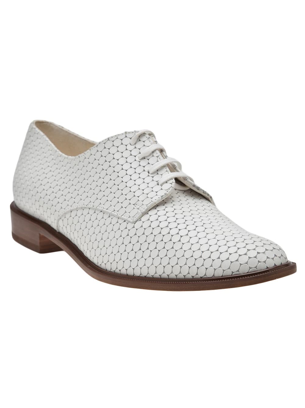 No puede faltar el color blanco. Fácil de combinar y muy a la moda en cuanto a calzado, el color blanco es ideal para lucir tus oxfords. Incluso, puedes optar por unos oxfords con textura como estampado de serpiente o estos originales oxfords de Robert Clergerie.