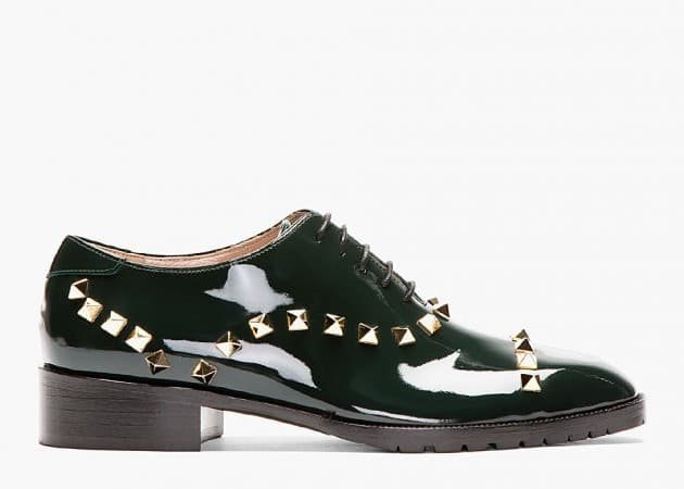 Estos oxford verde oscuro con tachas doradas de Valentino son una excelente combinación.