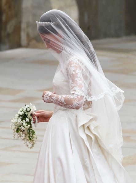 Notice the amount of detail the veil has; embroidered flowers and petals gave a touch of youth and elegance to Kate’s overall look.