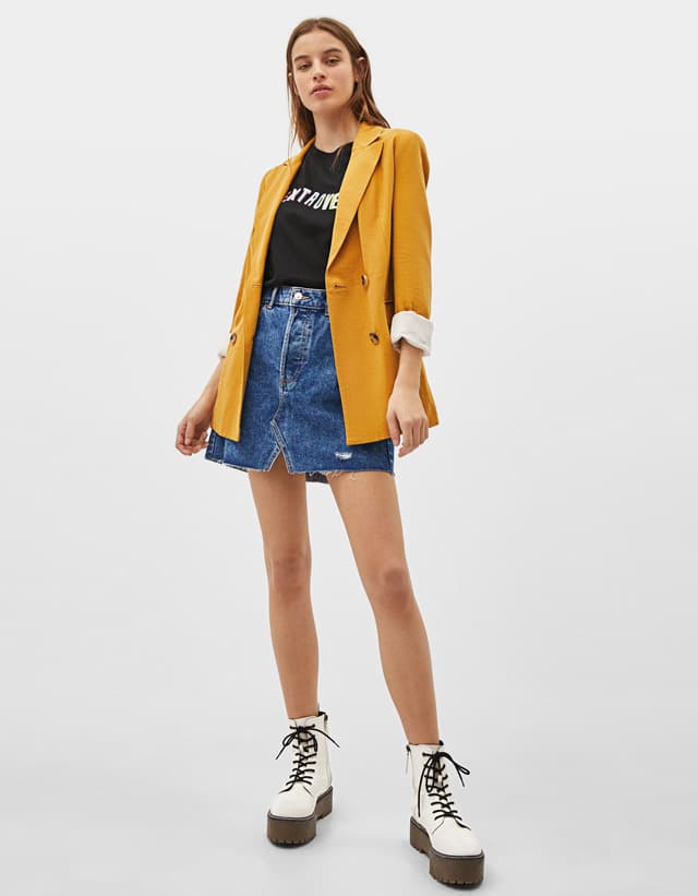 Un blazer color mostaza le puede dar ese toque de actitud y vida a un outfit bastante cotidiano.