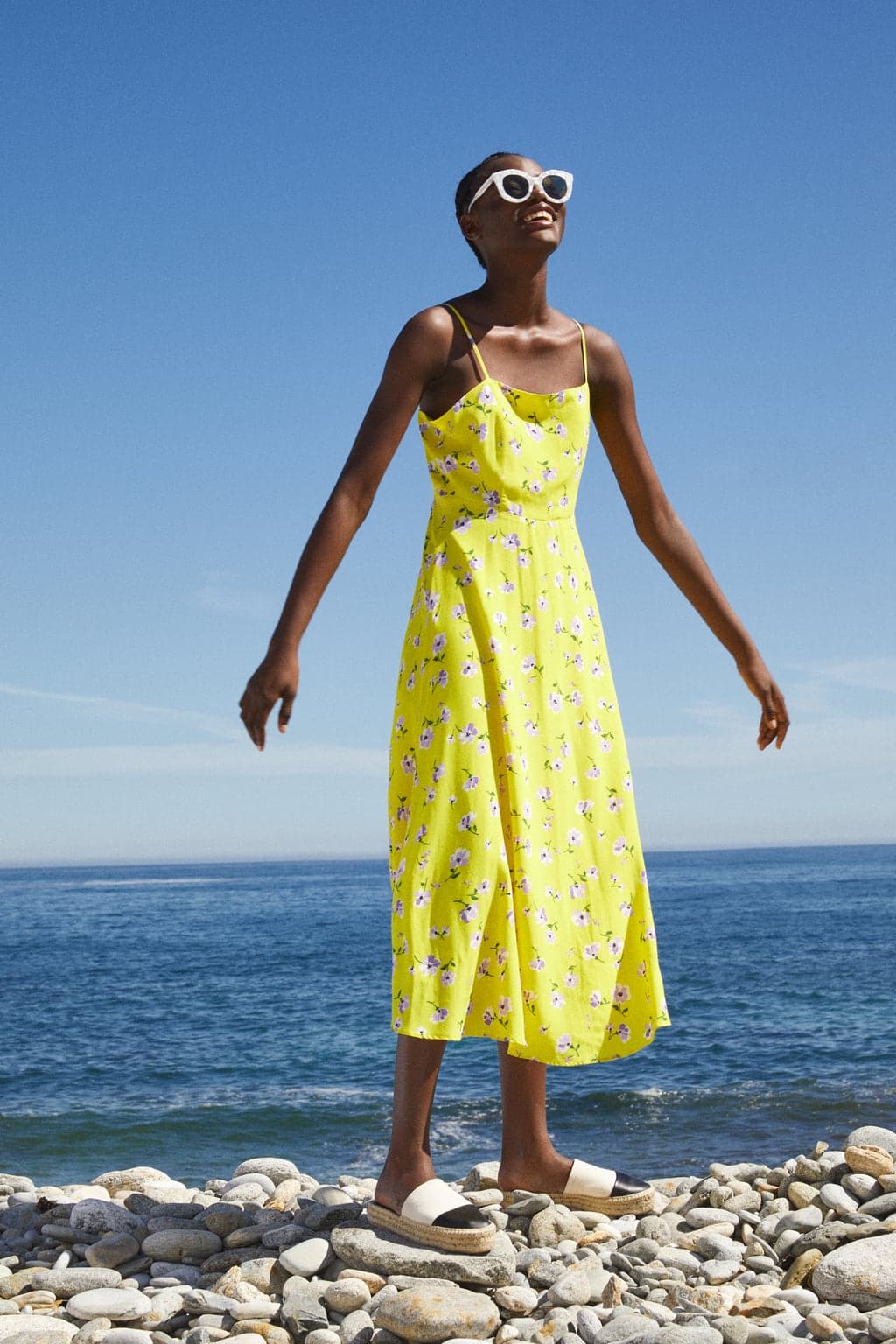 Los vestidos largos también te pueden mantener fresca. Además, lucirlo en amarillo llenará de color los días de verano.