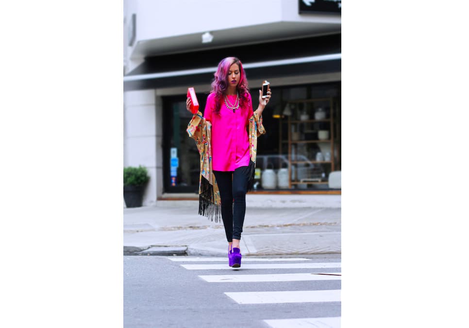 Para la noche, nada mejor que ese vestido negro que te salva de todo evento y te queda pintado, acompañado por un kimono largo con flecos en las puntas, un clutch con algunos detalles como tachas o algún bordado y unos lindos tacones.