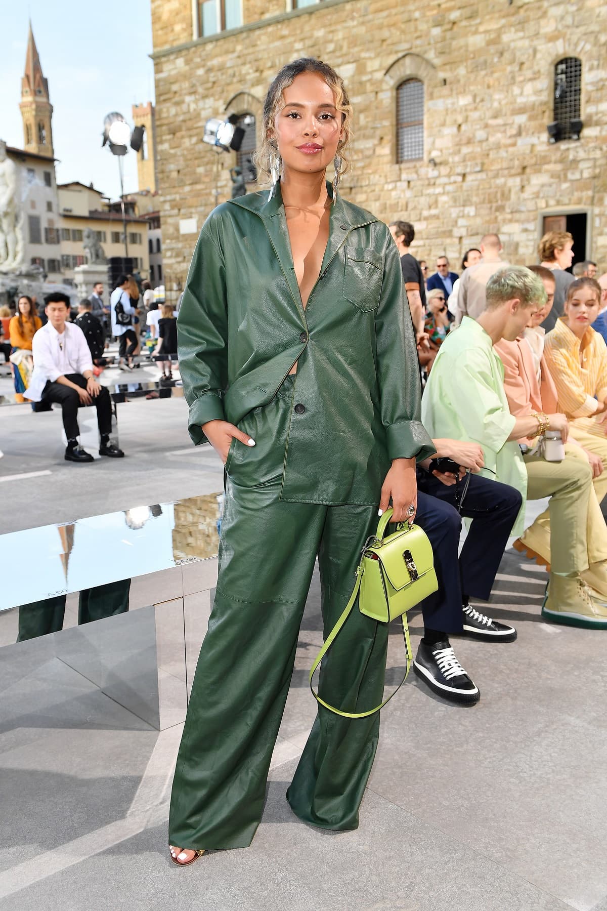 Atrévete a experimentar con diferentes tonalidades de verde. Agrega accesorios como collares o bolsas de colores más fuertes o más claros. Todo dependerá de tu estilo y, sobre todo, de lo que quieras expresar.
