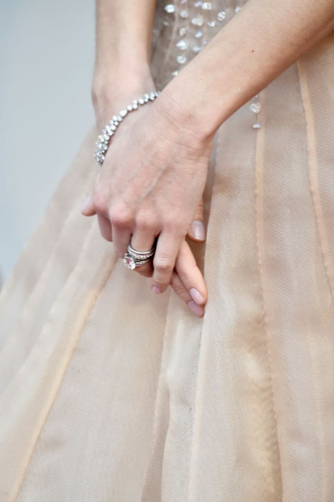 Fiel a su estilo, para la gala optó por un look de los años 50, esta vez con un diseño de Armani Privé y las joyas de la prestigiosa marca Harry Winston.