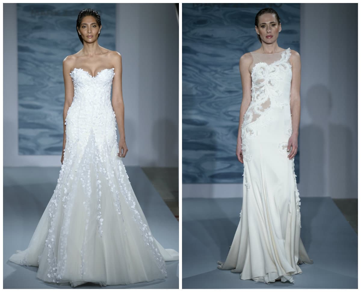 Los plisados asimétricos o las cinturas imperio no deberían faltar en tu vestido de novia.