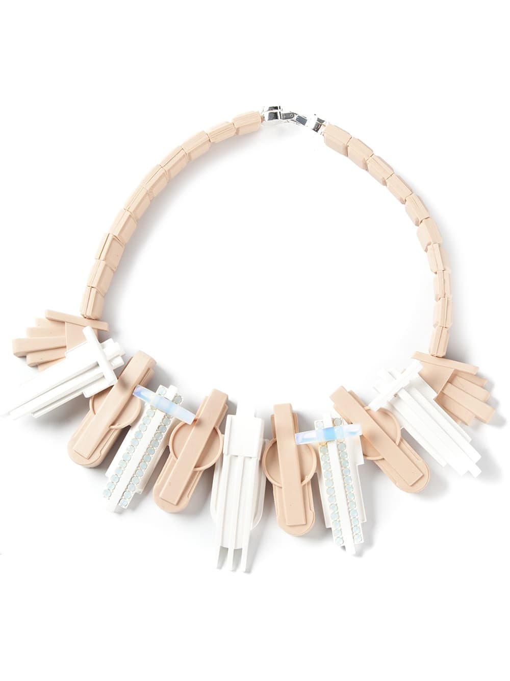 Los collares nude son ideales para incorporar a tus atuendos. Puedes combinar un collar nude como este original collar art decó de Ek Thongprasert con una blusa blanca y un jean para un buen look casual.