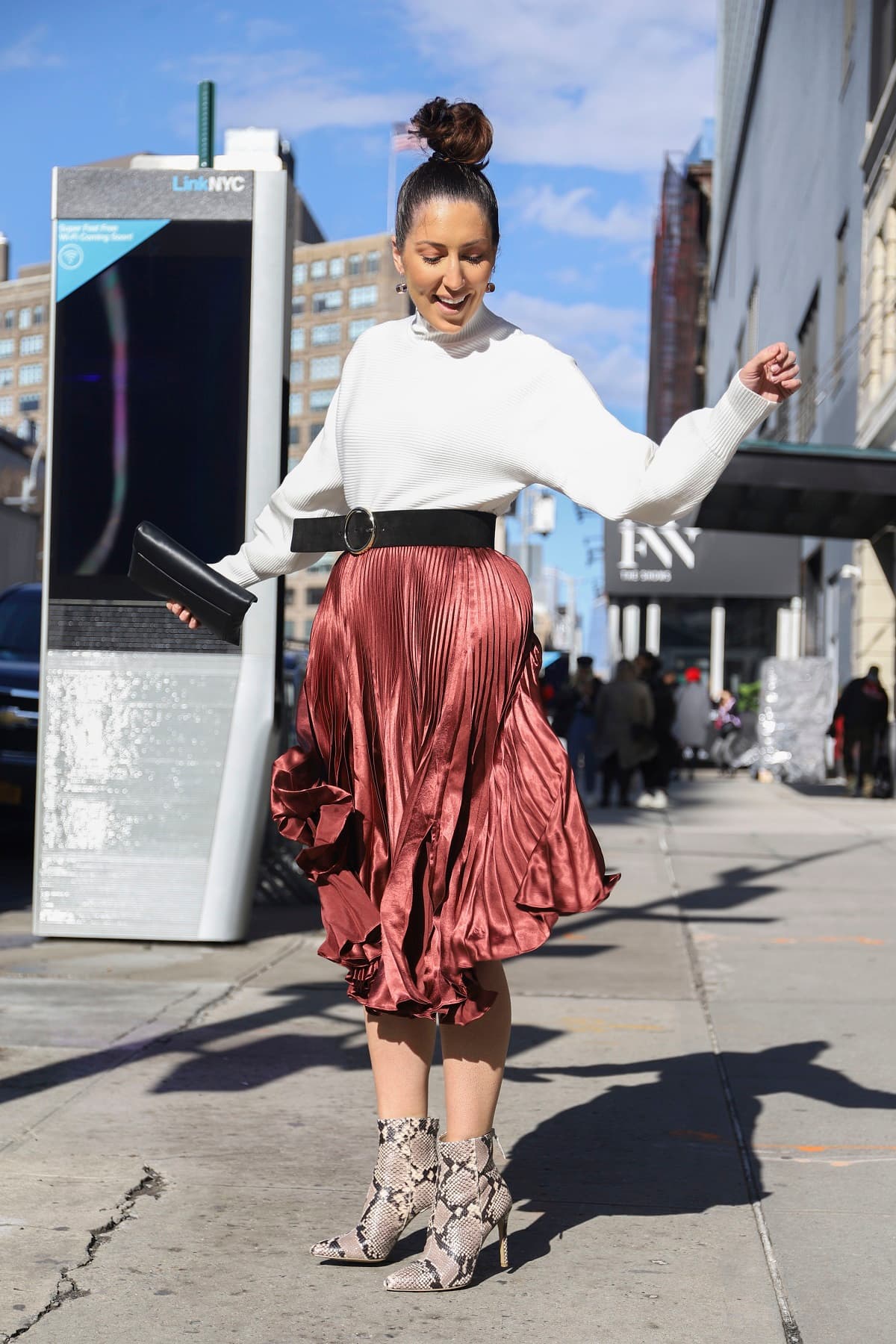 Sácale jugo con faldas a la cintura con corte midi. Juega con las texturas y atrévete a usar telas vaporosas.