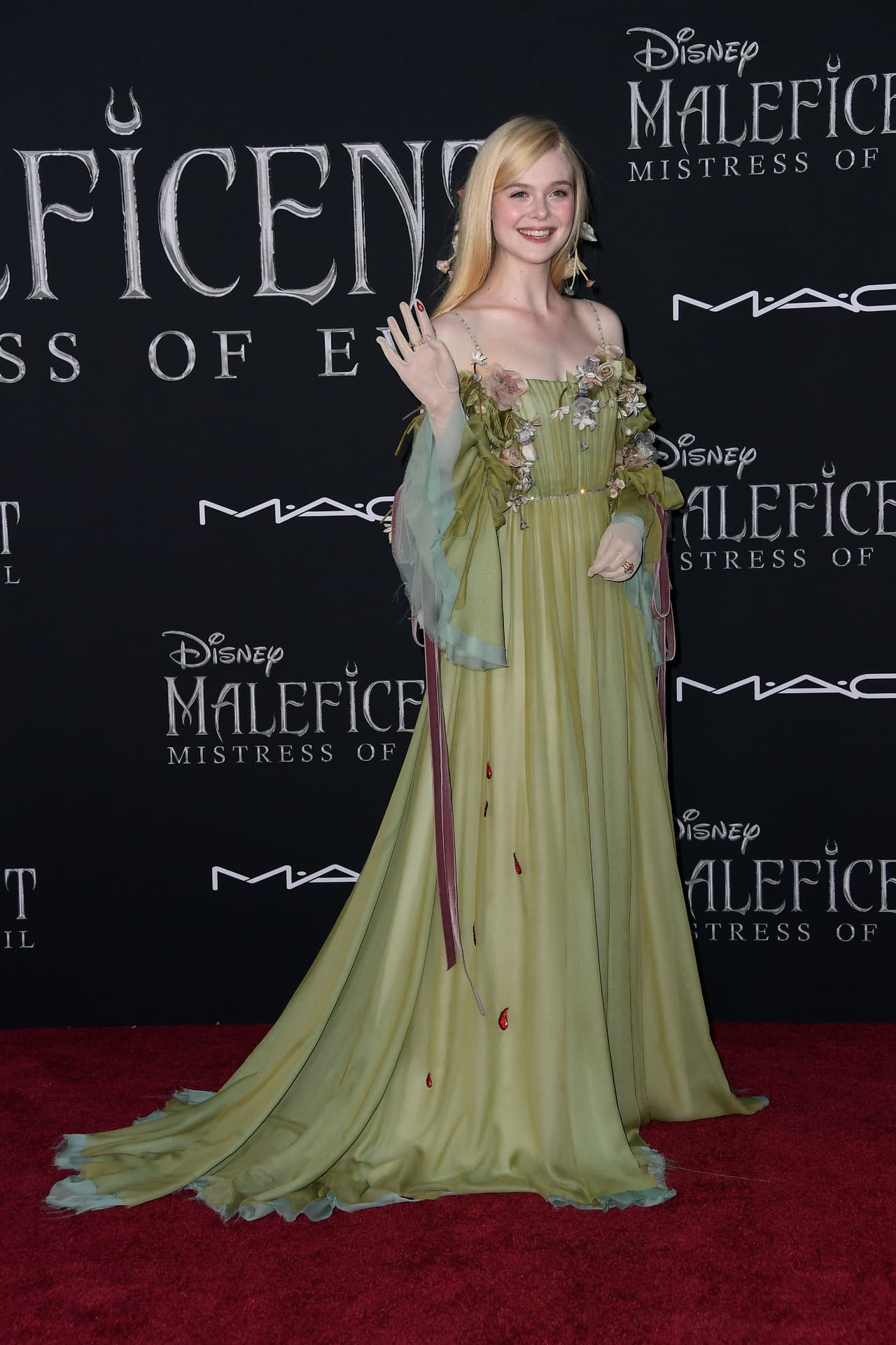 Tan sólo para la premiere de la secuela, Maléfica, emperatriz del mal, Elle lució una serie de vestidos dignos de una princesa.