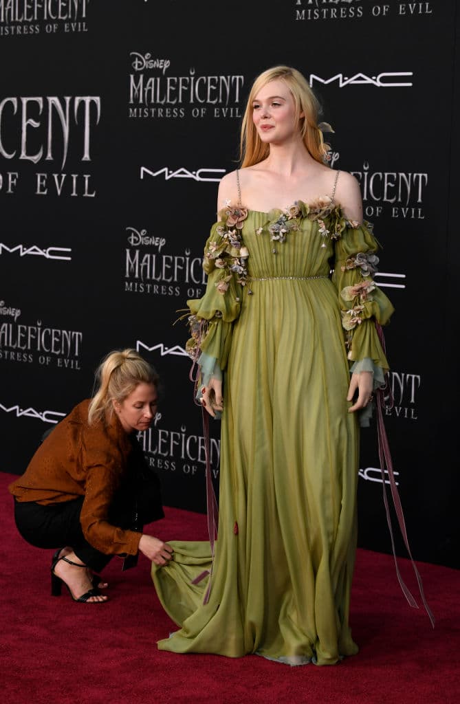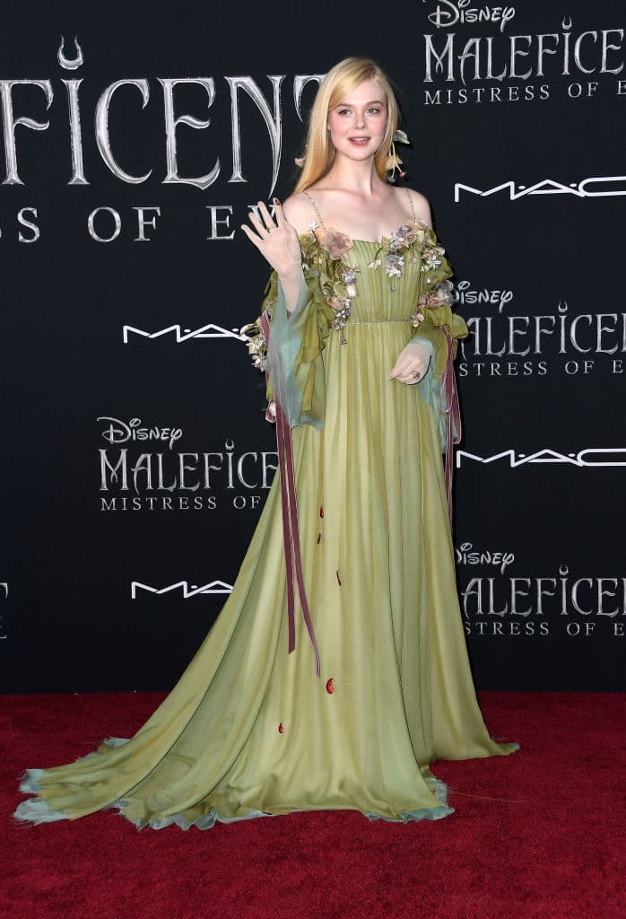En específico, la premier de la cinta en Los Ángeles vio a Fanning brillar como toda una monarca de fantasía, en un maravilloso atuendo verde de chifón.