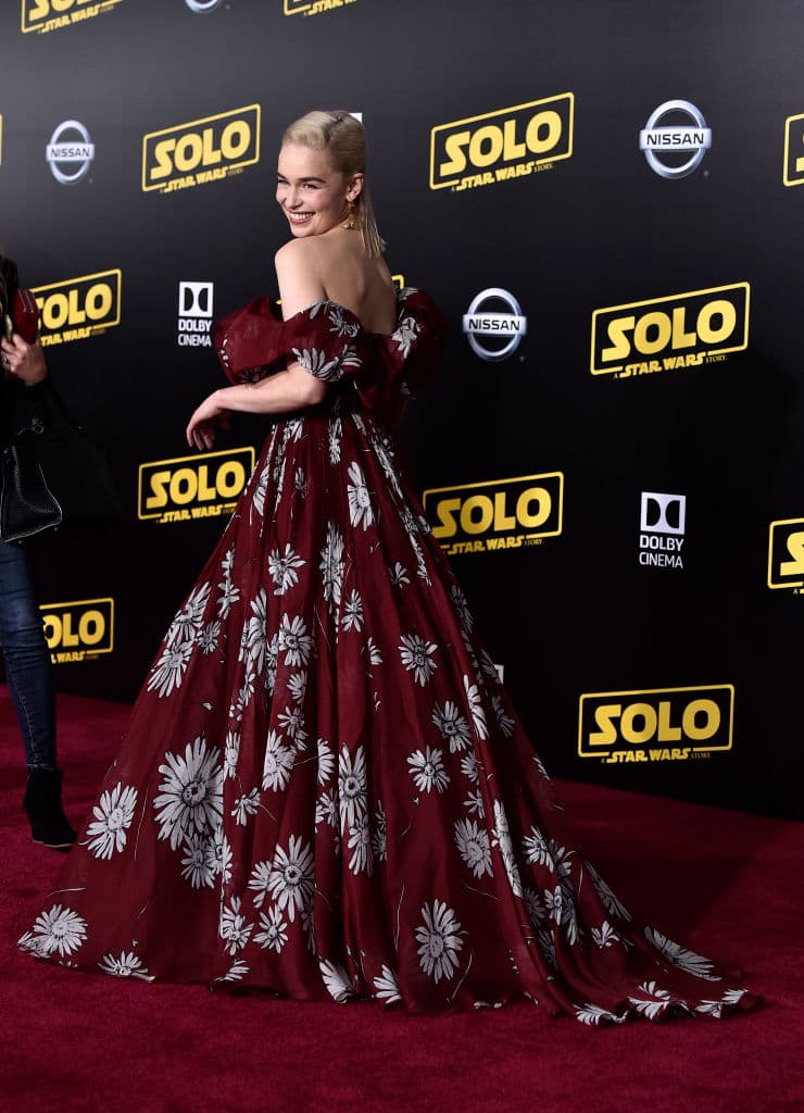 La prenda o accesorio que mejor luce Emilia Clarke sin duda es su sonrisa. Pero eso no quita que durante las alfombras rojas nos deslumbre también con la elegancia de sus atuendos. Este 10 de mayo fue la premiere de Solo: A Star Wars Story en Los Ángeles y la famosa actriz británica se vio fuera de este mundo.