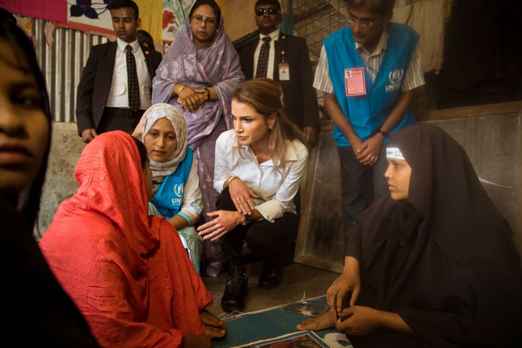 En 1999 fue proclamada reina consorte y desde ese momento, fue comparada muchas veces con Lady Di por su cercanía con su pueblo, sus labores benéficas y su compromiso por luchar por los derechos de las mujeres y de los niños de Jordania, mediante fundaciones propias o en coordinación con organismos internacionales como la ONU y la Unicef.