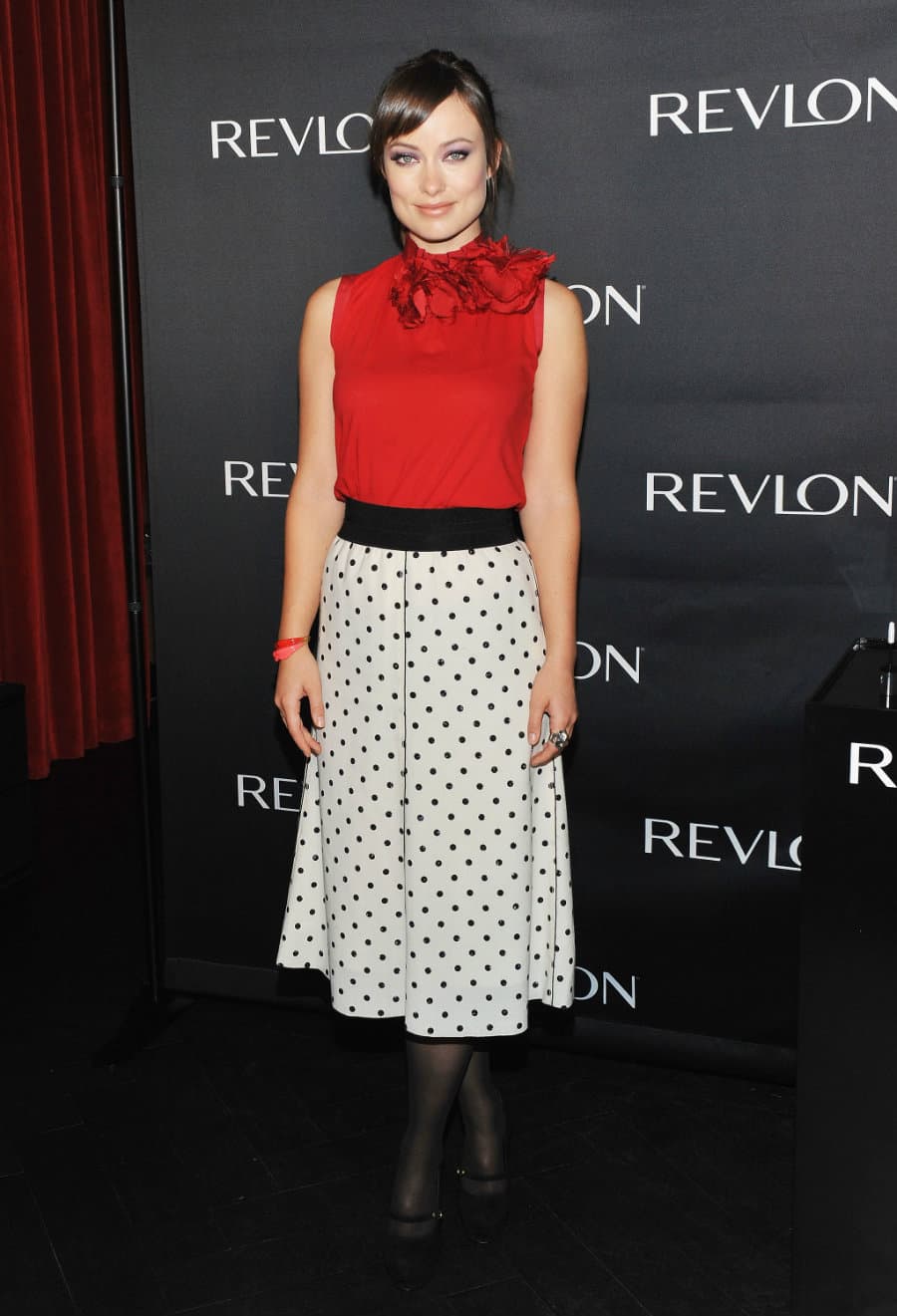 Olivia Wilde, en cambio, optó por lucir una falda a lunares, blanca con lunares negros y el detalle del elástico o cinto en negro. Lo bueno de este tipo de prendas es que te permiten combinarlo con otros colores lisos. Ella eligió una blusa roja con el detalle del volado en el cuello.