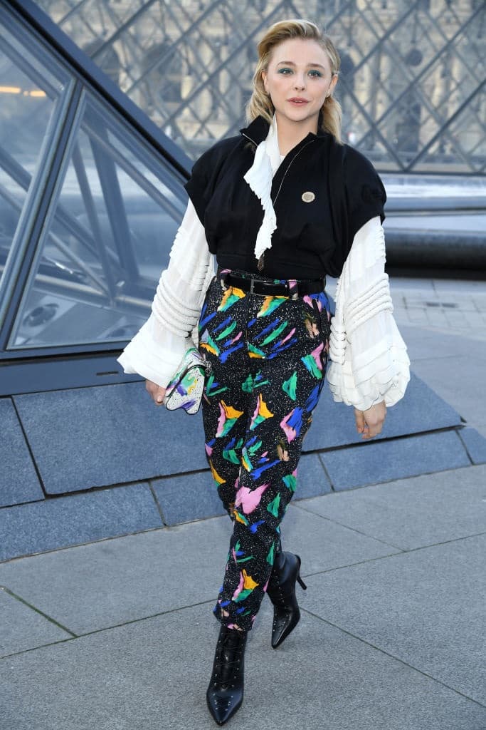 Chloë acaparó las cámaras con un look vintage de tintes ochenteros Louis Vuiton. El maquillaje perfeccionó los tonos brillantes de todo el vestuario.