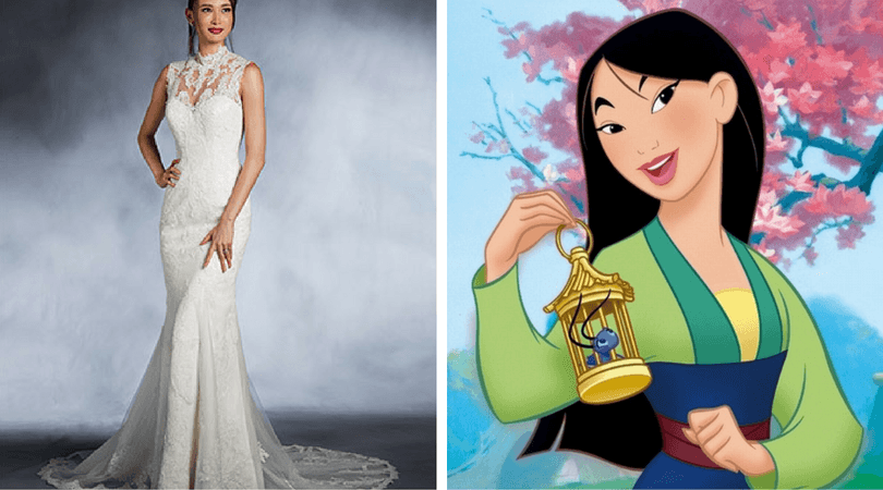 " Su espíritu independiente, su historia diversa y sus fuertes personalidades son características con las que las novias modernas se pueden identificar", dijo Bill Pesce sobre estas princesas, pero lo cierto es que a no ser por su anuncio, jamás podríamos habernos dado cuenta de la fuente de inspiración de los vestidos. El tirante único del vestido de Pocahontas y el collar mandarín del de Mulan son los únicos detalles visibles de estas princesas en unos diseños que para Pesce y Disney mezclan tradición y modernidad.