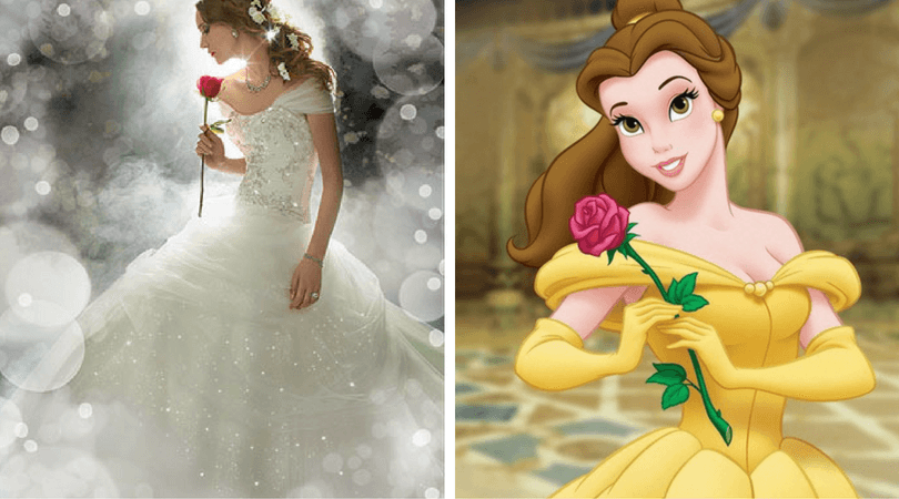Vestidos blancos y espléndidos representan todo a la perfección la tradición de Cenicienta, Ariel y Bella.