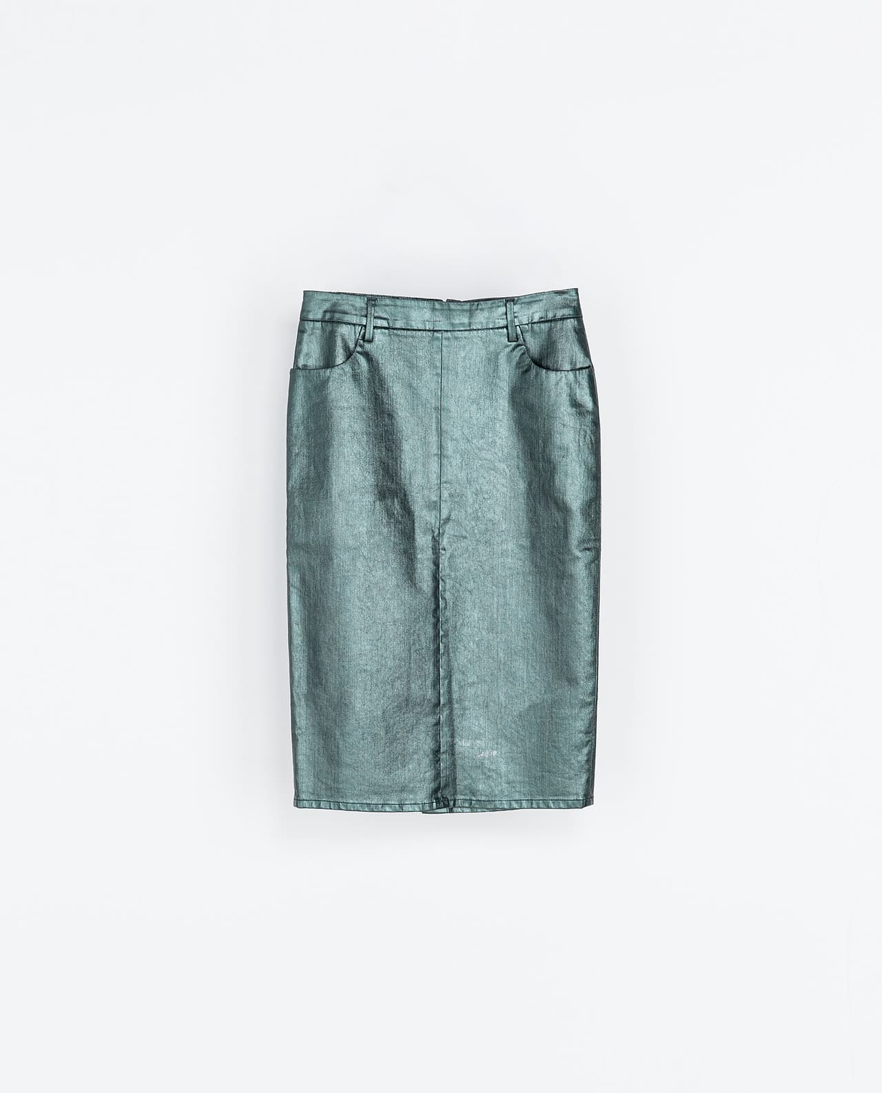Olvídate del dorado y el plateado, esta falda verde metalizada es perfecta para dar ese toque llamativo a un look demasiado sobrio.