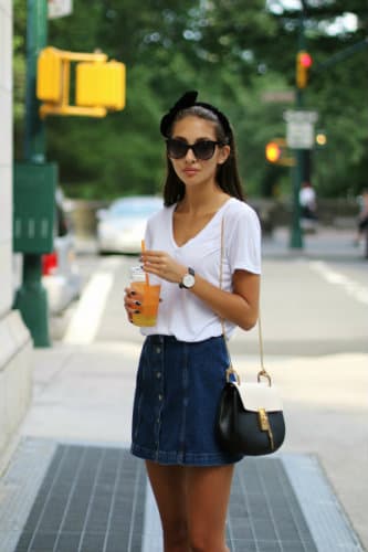 En este caso la prenda IT es la falda de jean en forma de trapecio abotonada en el frente. Estilo vintage, años 90, clásica pero trendy.