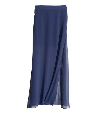 Las faldas de gasa largas continuán siendo tendencia, así que si ya la tienes o la quieres adquirir no lo dudes. Puedes optar por una falda estampada o por una falda lisa de color como esta de H&M apropiada tanto para un look diario como para una ocasión especial.