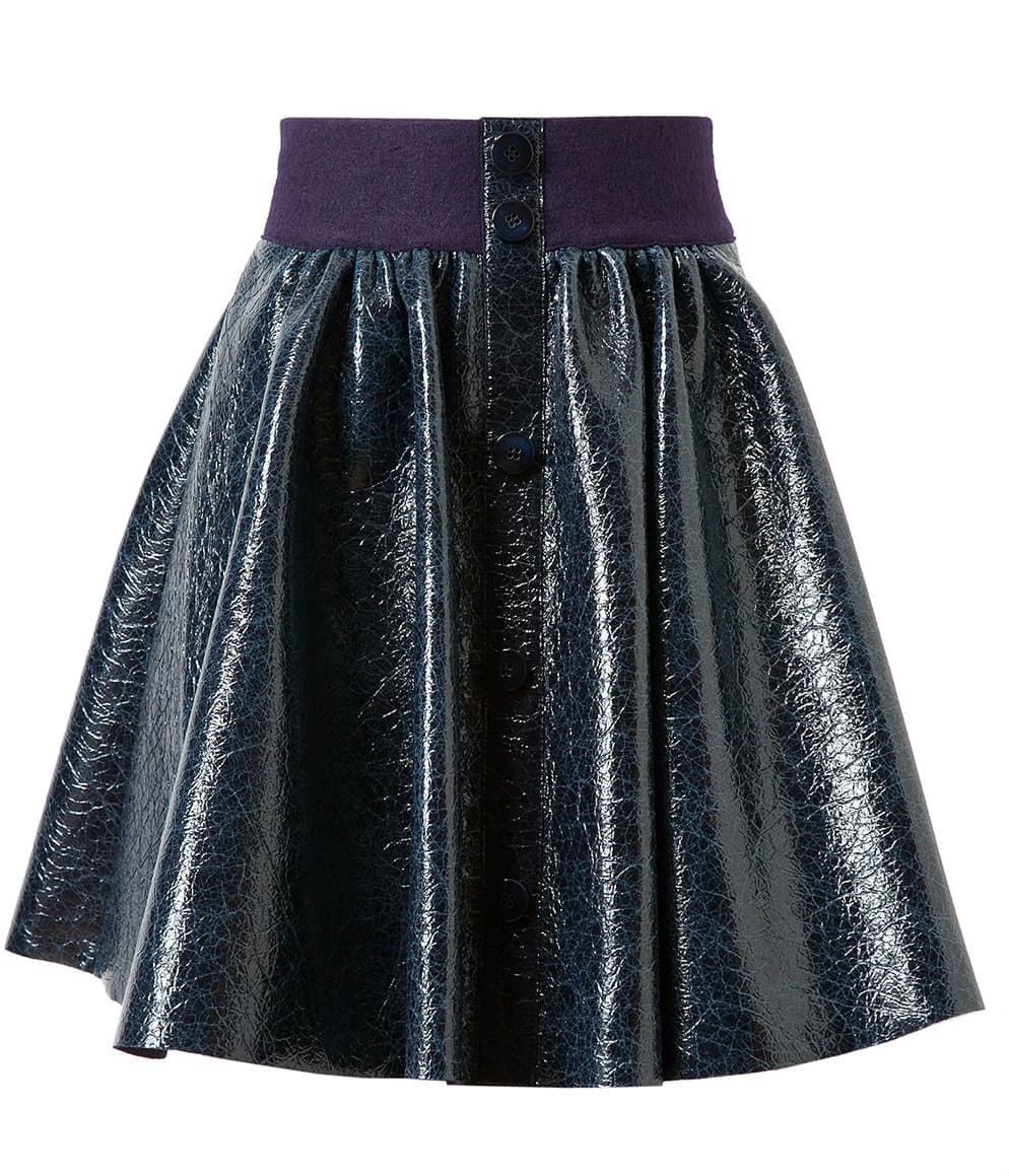 Si buscas algo original y diferente puedes optar por una falda acampanada en otra textura como esta laminada de Roksanda Ilincic.