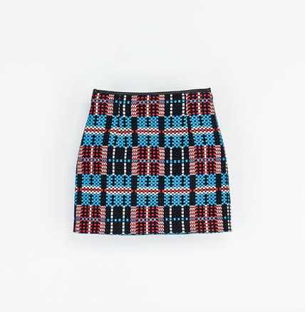 Puedes animarte también a colores fuertes como esta falda en tonos de azul de Zara.