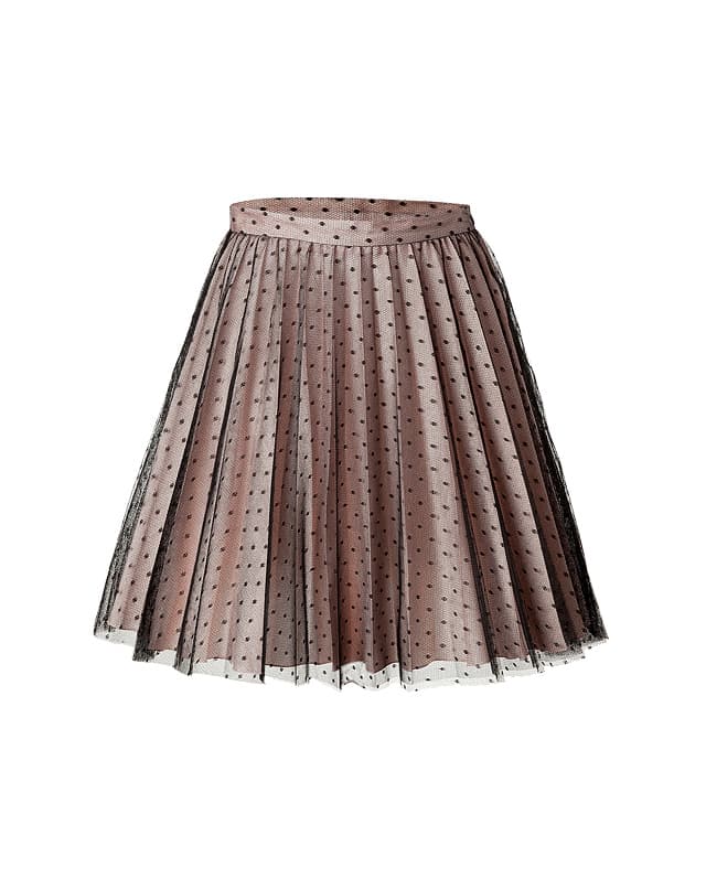 El estampado a lunares es divertido, alegre y luce muy bien en una falda de tul. Combina bien los colores, como está falda rosa y negro de Red Valentino para un look de oficina o una en dorado y negro para un look de noche.