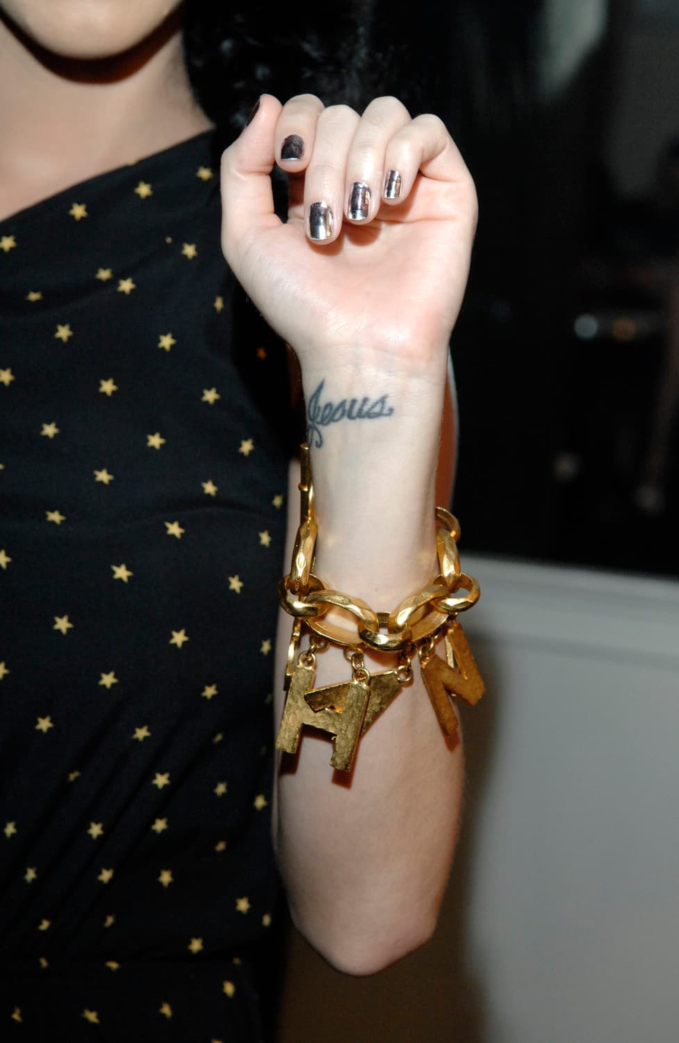 Y aquí tienen la prueba de la fe en Cristo de la cantante Katy Perry, quien ha grabado el nombre de "Jesús" en su muñeca cuando tenía 18 años.